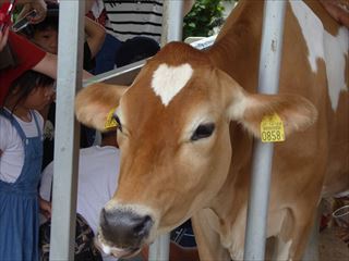 広大なひまわり畑とハート柄の模様のジャージ牛!!