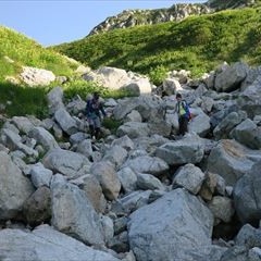 基地になる雷鳥沢ヒュッテ&テント場へ重いザックを再度背負いハイク。
