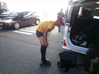 とりあえず、車からサンダルを降ろし、登山靴と靴下を脱ぎ捨てて、履き替える。