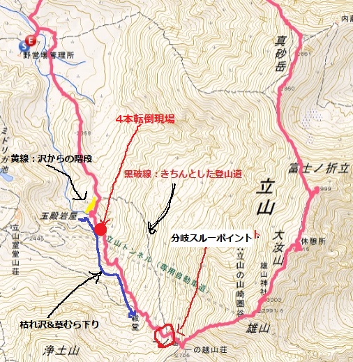 隊長は本来なら地獄谷経由で室堂ターミナルまでいくつもりだったみたいだ。